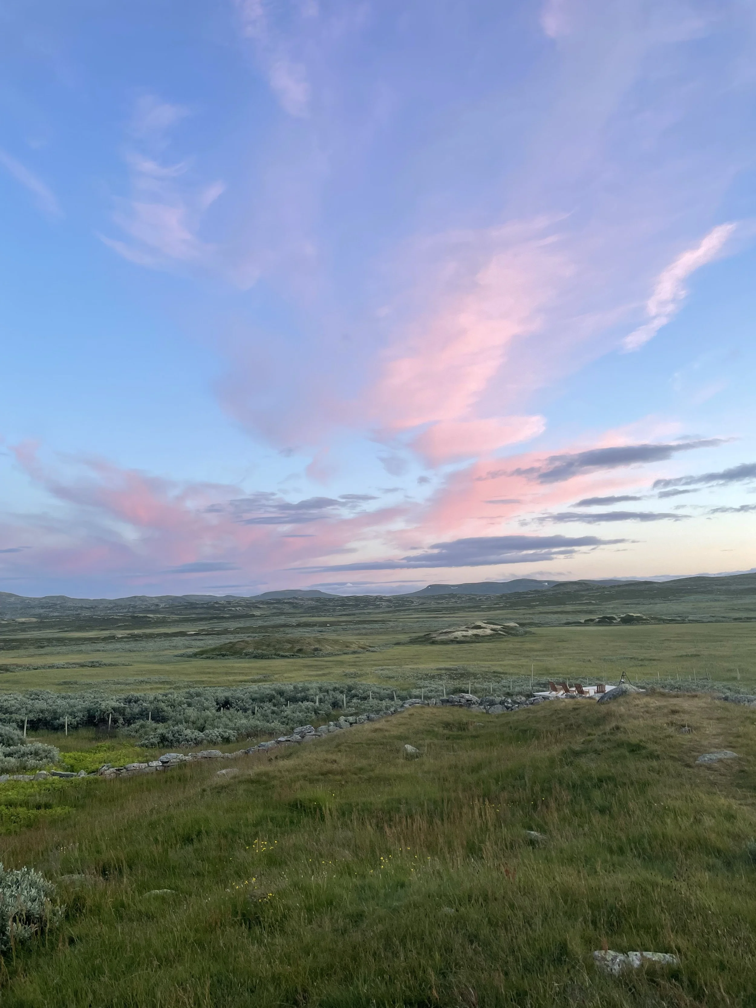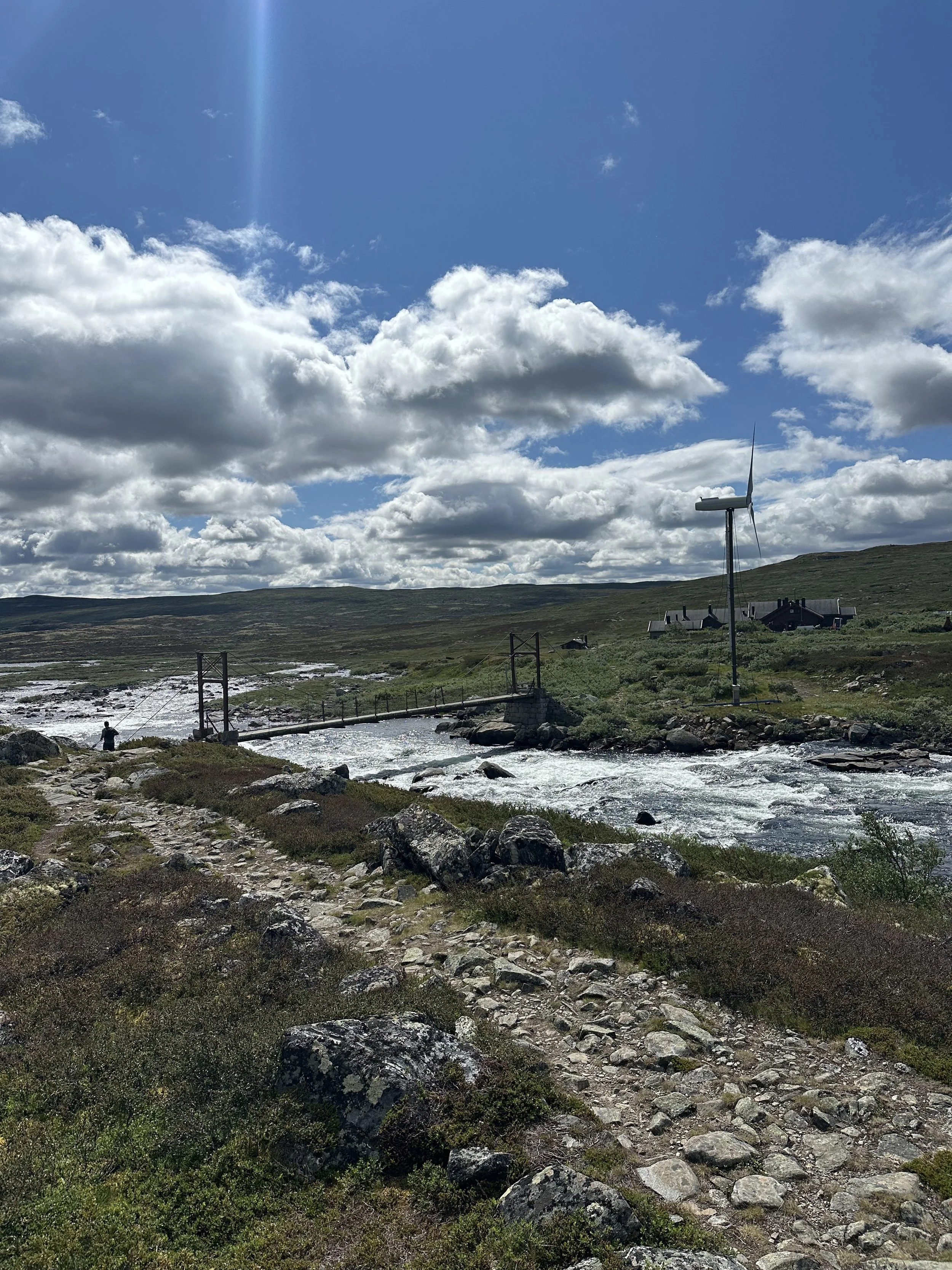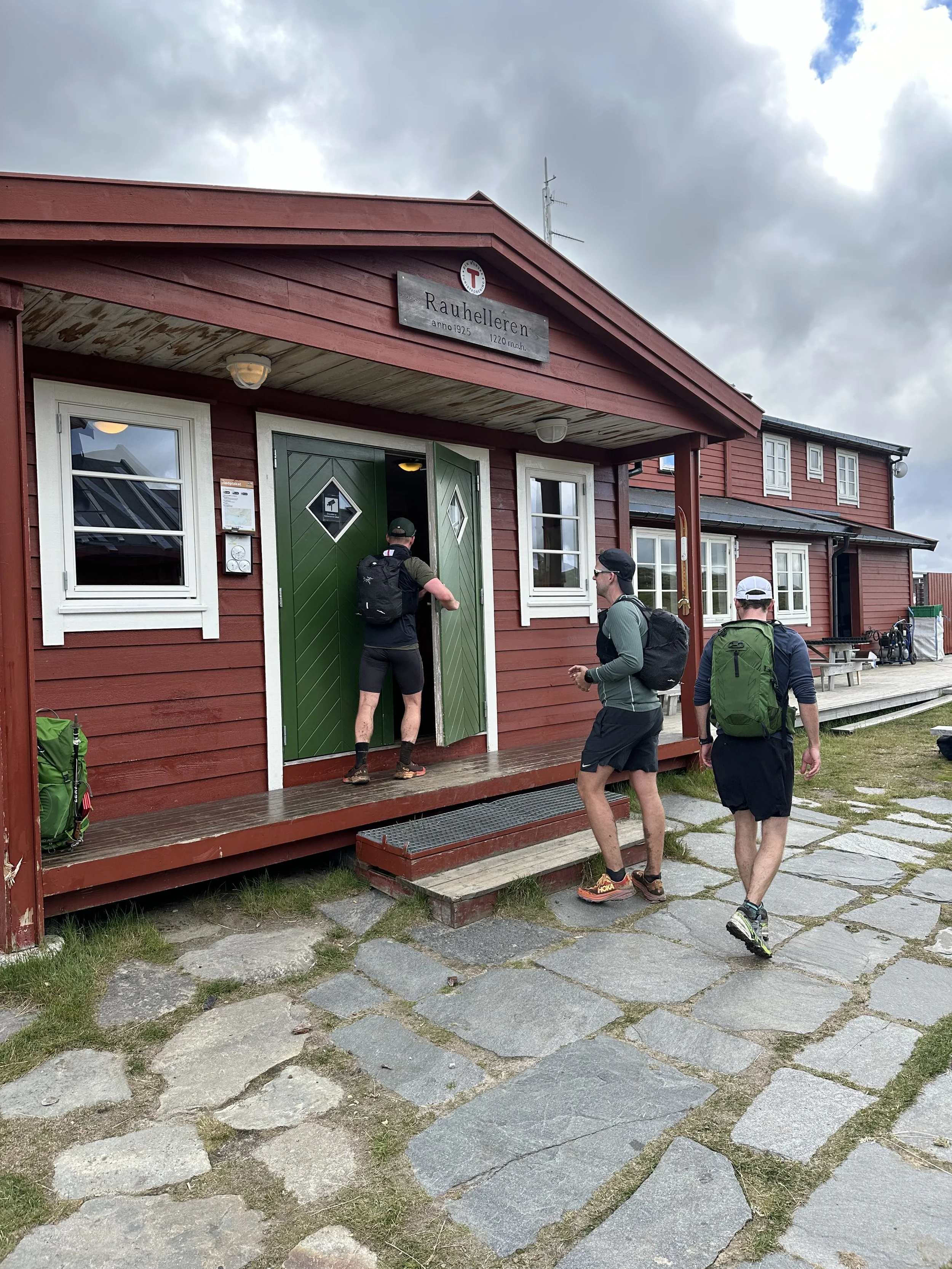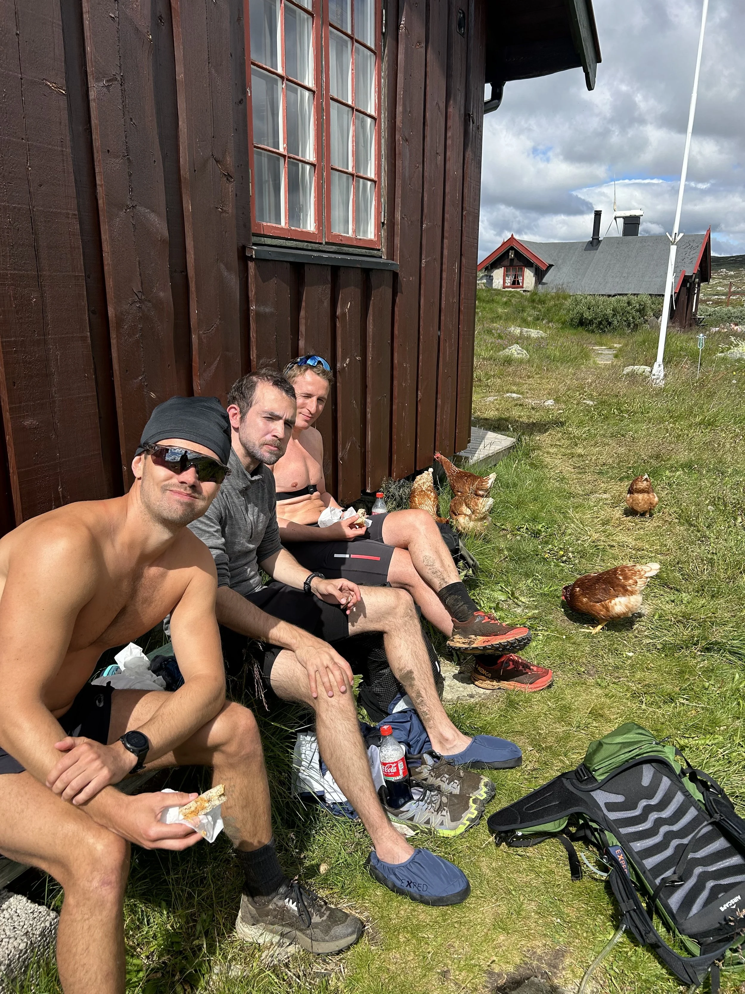 På papiret den lengste etappen. 25.8 kilometer med over 600 høydemeter. Kroppene kjennes bra banket ut etter gårsdagen. Vi er ikke ute av hytta før nærmere 10:45, så vi har tatt oss god tid til frokost, kaffe, sigg, morgentoalettet og pakking av matpakker. Rolig frokost er forøvrig noe av det aller beste med såkalt fastpacking, man trenger ikke å stå opp kl 05:00 for å rekke middagen på neste hytte.
