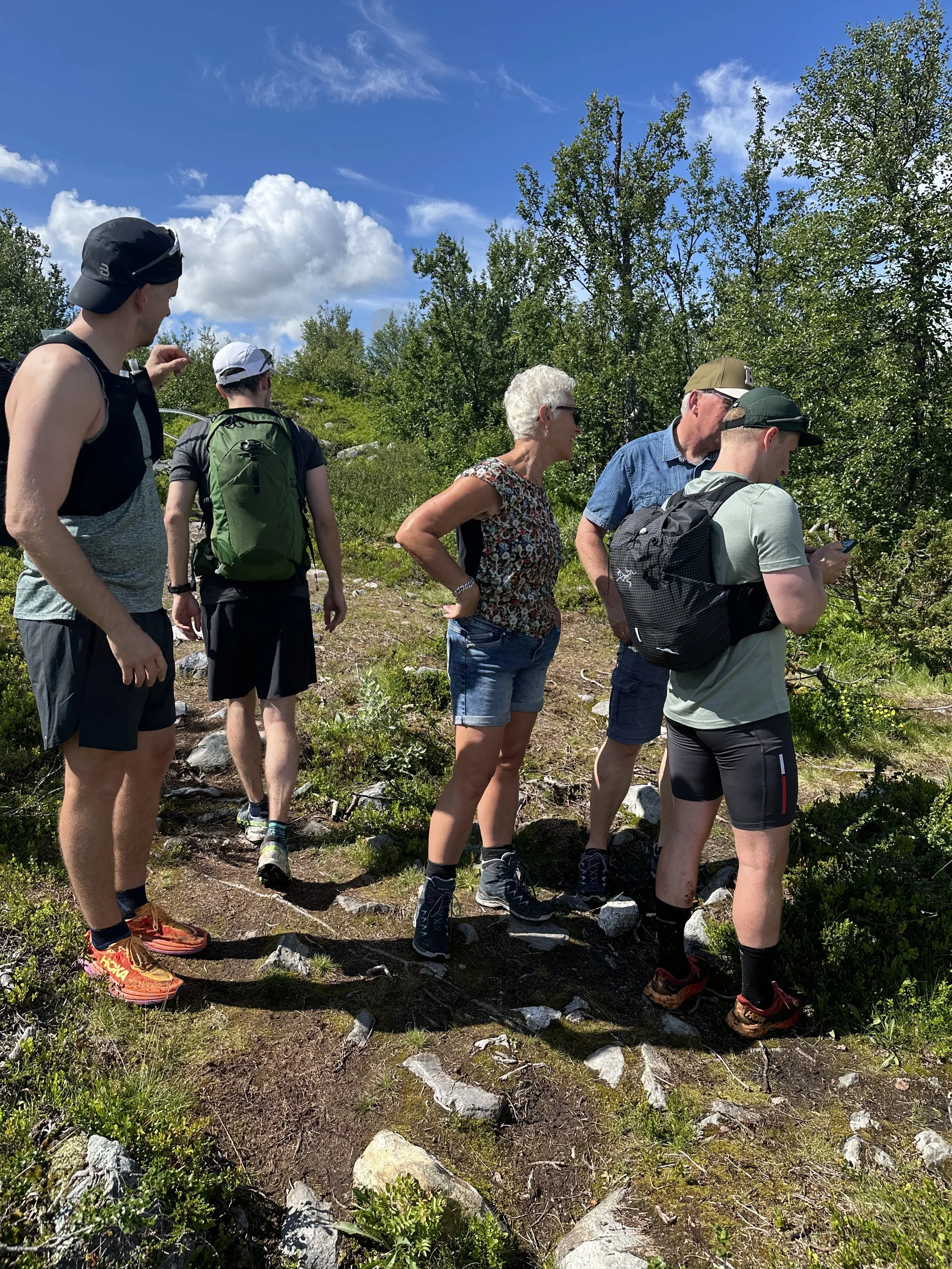 Første del av etappen er preget av myr, så her går det nokså sakte med oss. Når vi nærmere oss Heinseter som er dagens innlagt stopp til lunsj, blir stiene imidlertid svært gode.
